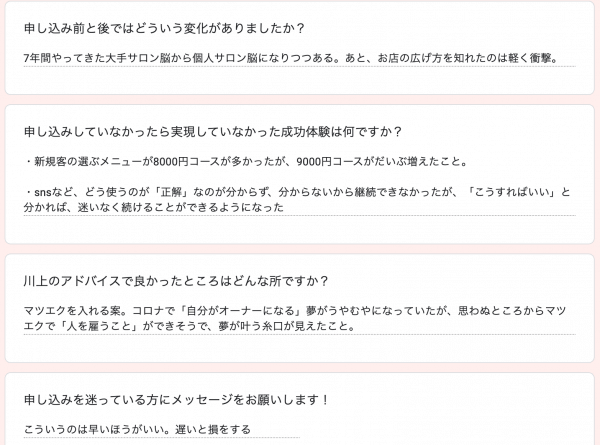 コンサルティングの感想を紹介しますね。